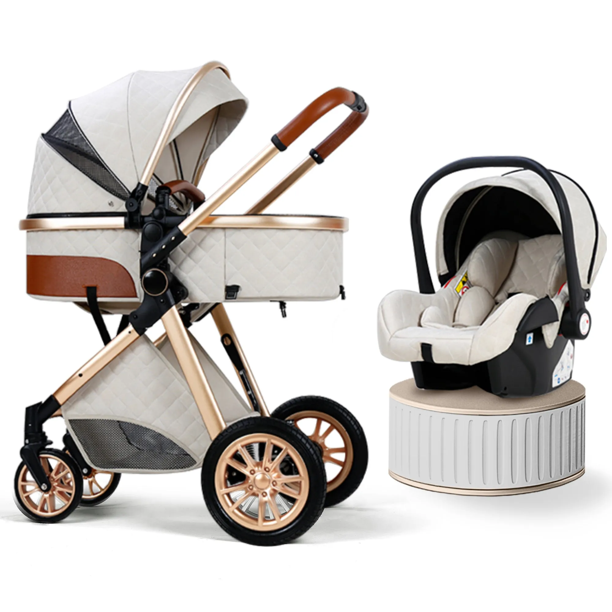 OFF-WHITE/Luxury Pram High Landscape Baby Stroller(Car Seat)